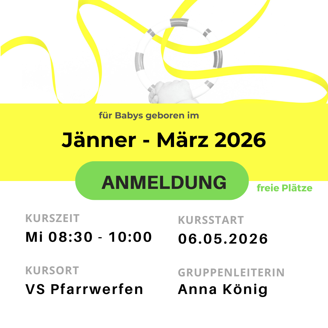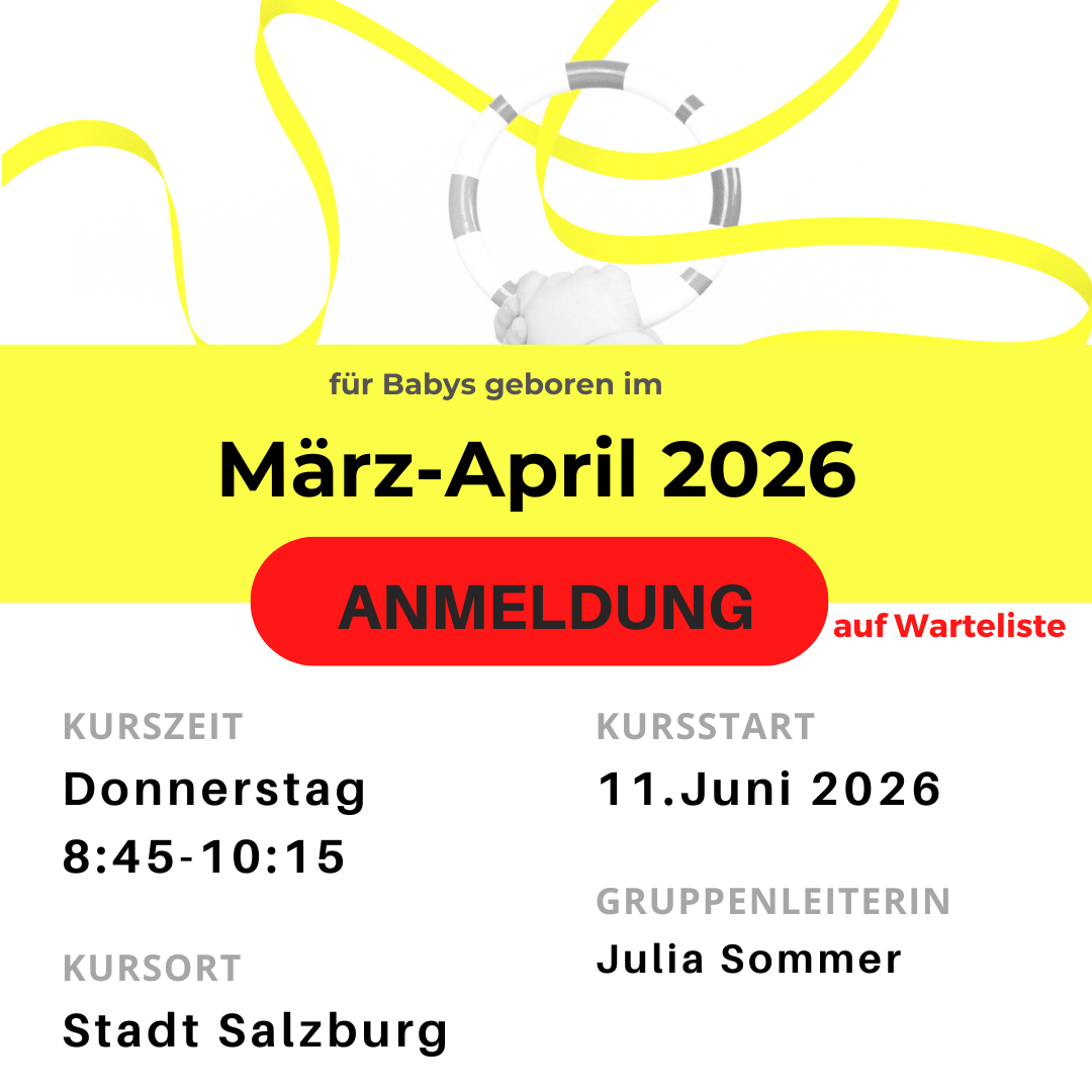 Teilnehmende Babys sollten mindesten 6 Wochen alt sein, können aber auch zu einem späteren Zeitpunkt im ersten Lebensjahr einsteigen.